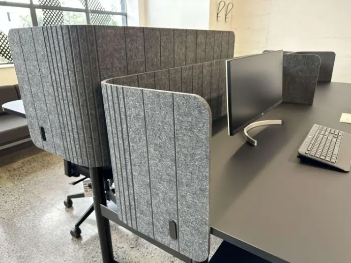 هذه الألواح الصوتية المغطاة بالقماش مستقلة وقائمة بذاتها، ومصممة لامتصاص الصوت بفعالية وتقليل الصدى في البيئات المفتوحة أو المشتركة.