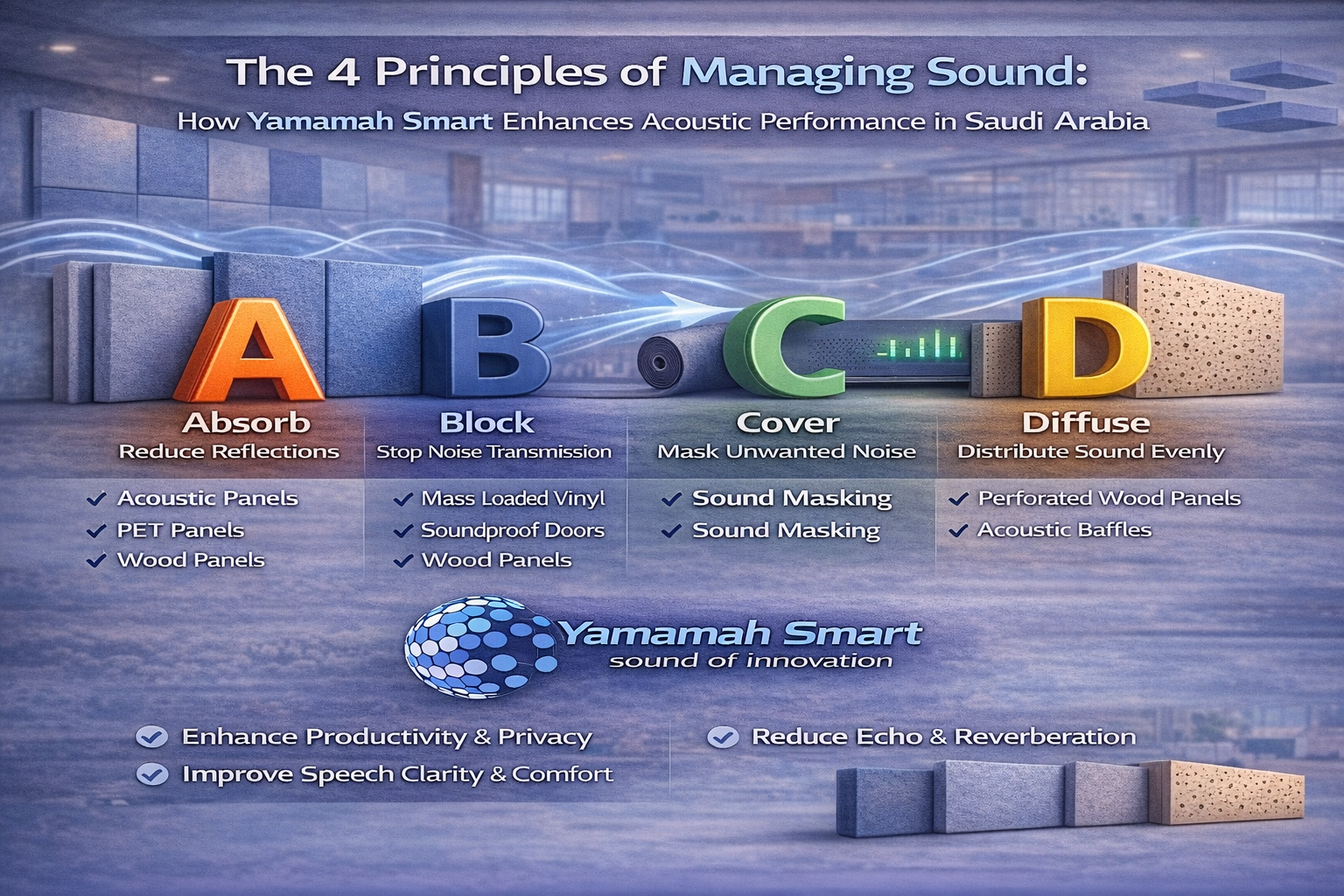 The 4 Principles of Managing Sound: How Yamamah Smart Enhances Acoustic Performance in Saudi Arabia