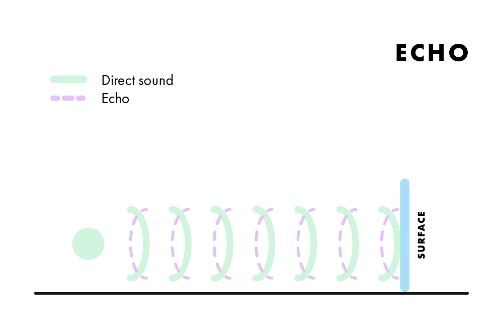 Echo occurs when reflected sound waves reach a listener after a delay, which can interfere with conversations and amplify unwanted noise. The delay depends on the distance between the sound source, reflective surfaces, and the listener. Managing echo is key to creating a clear acoustic environment.