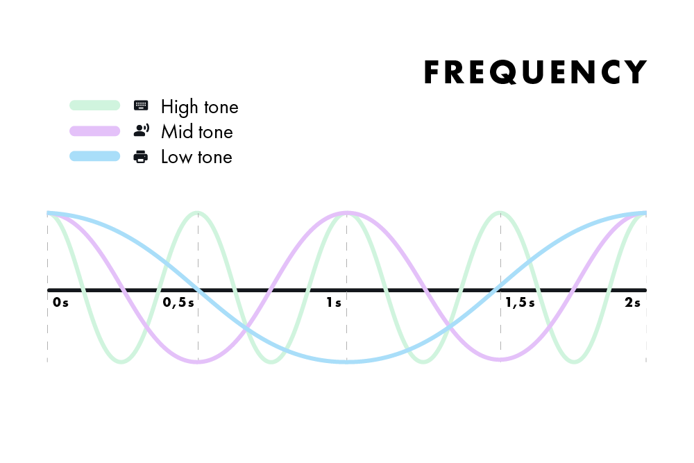 Frequency refers to the number of vibrations per second. Higher frequencies result from faster particle vibrations. Human hearing ranges from 20 Hz to 20,000 Hz, while normal human speech usually falls between 250 Hz and 2,000 Hz. The ability of sound to travel is also influenced by surrounding materials, such as walls, floors, ceilings, and furnishings.