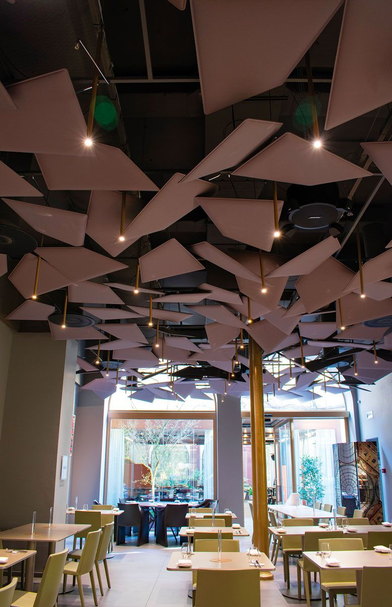 Pro tip: rugs under central runs or fabric-wrapped ceiling rafts over banquette rows cut clatter dramatically.